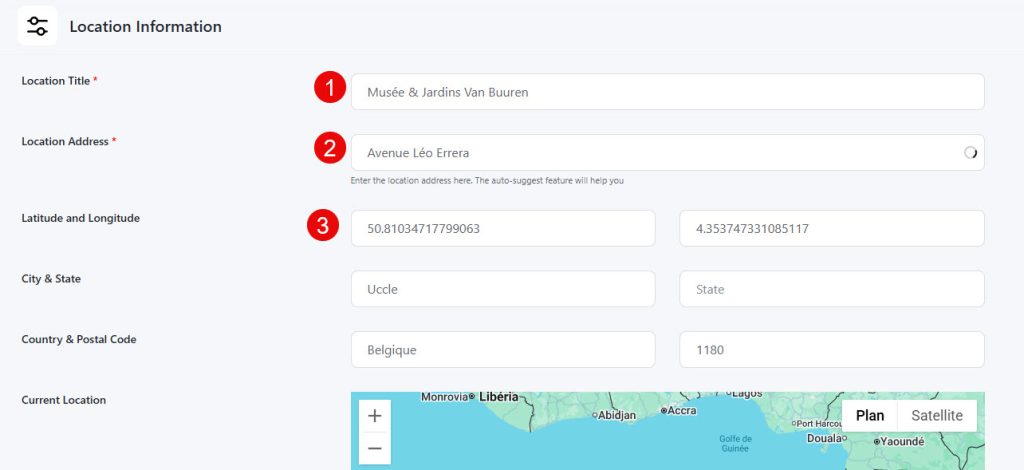 - Latitude et longitude ainsi que la ville, code postal et le pays.